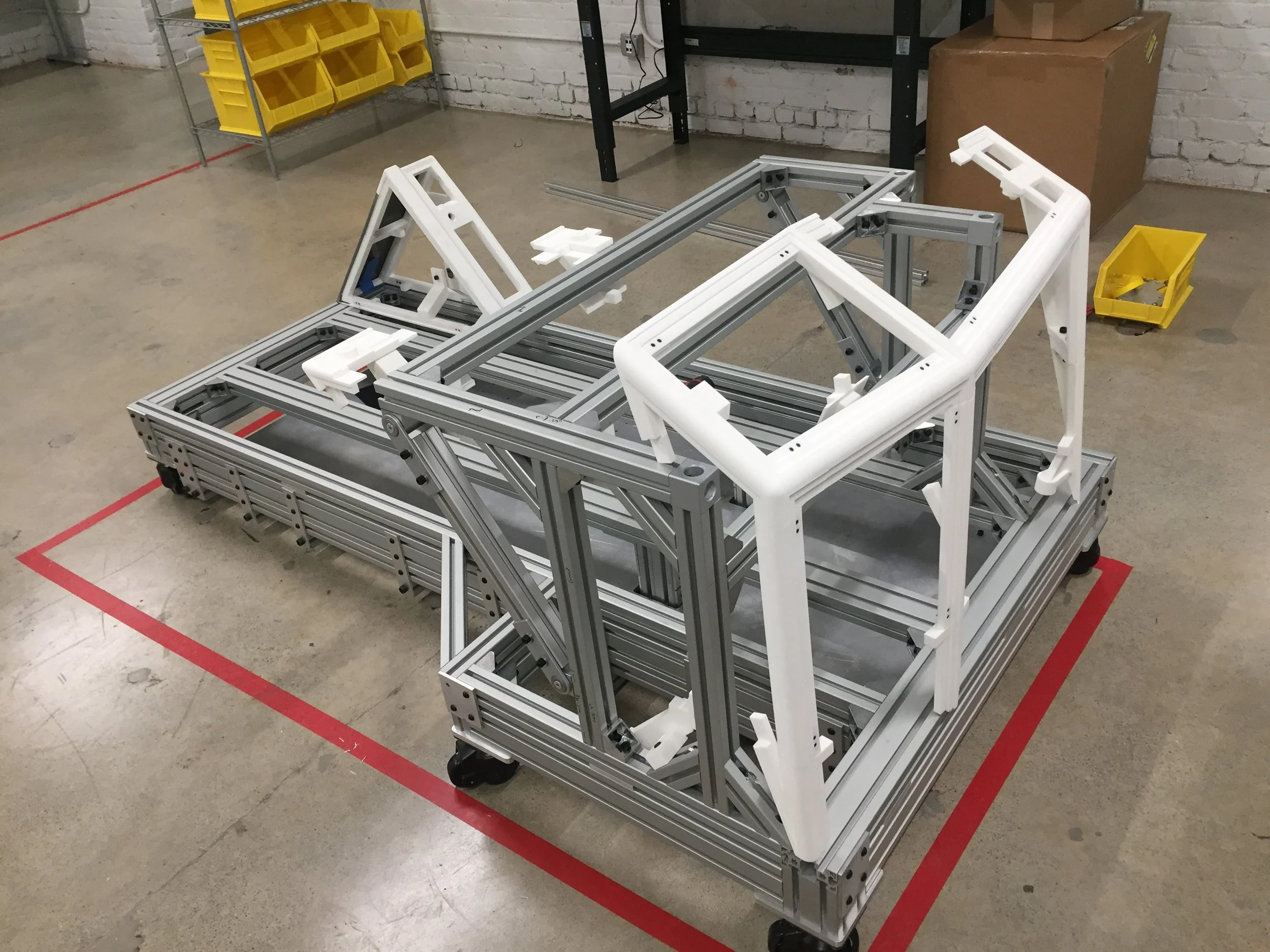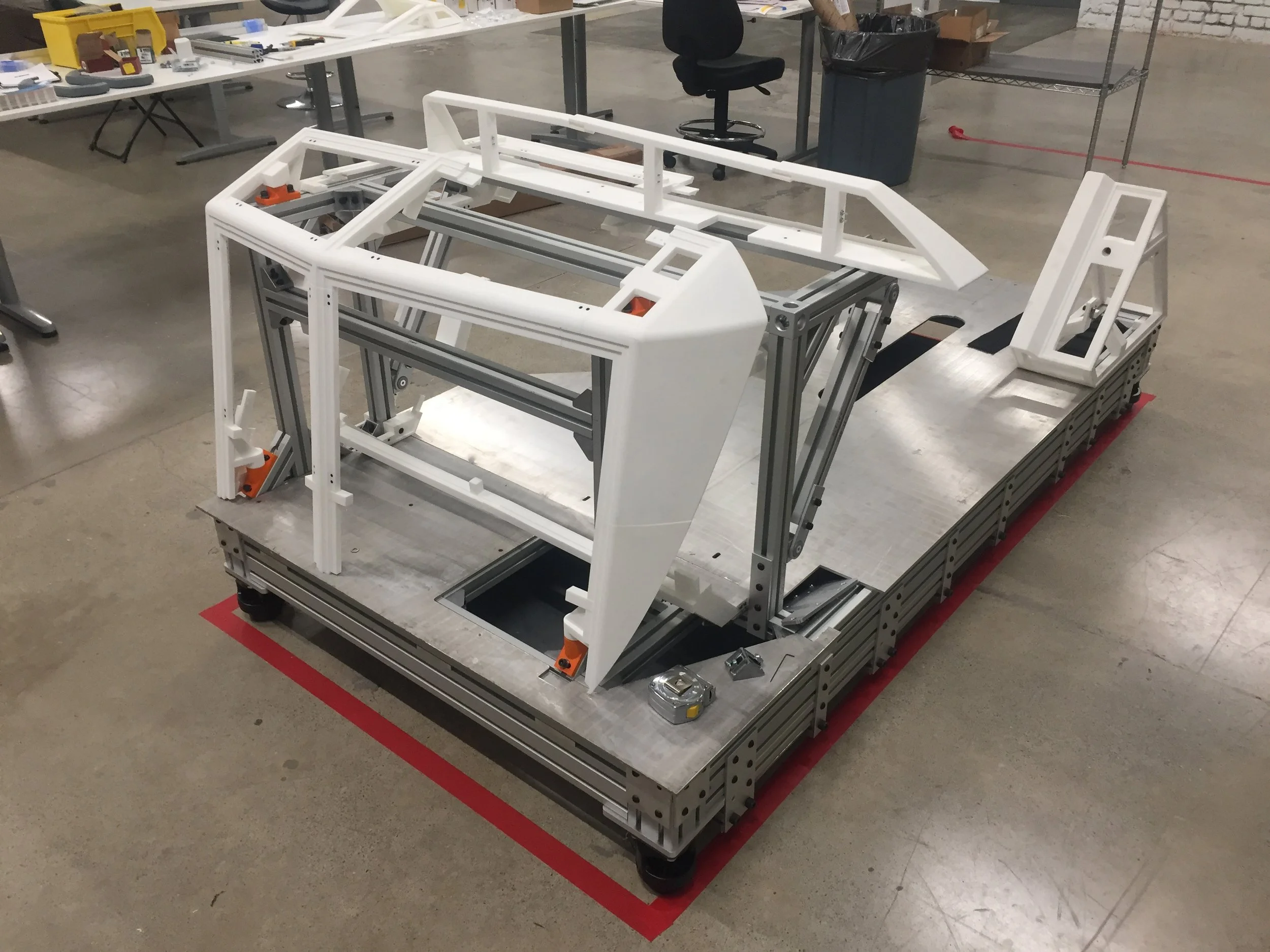 SUPPORTED CLIENT TO DESIGN SUBSYSTEMS OF THIS CONCEPT. FOCUSED ON DOOR FRAME SUBSYSTEMS DESIGN AND OUR EXECUTED THE BUILD. WE CREATED A STICK FRAME FROM 80/20 AND SLS PRINTED PARTS, LASER CUT PANELS, BONDO!, AND PROFESSIONAL PAININTING AND FINISHING. THIS ONE-OFF WAS SHIPPED TO GERMANY FOR THEIR COMPANY'S YEARLY SHOWCASE.